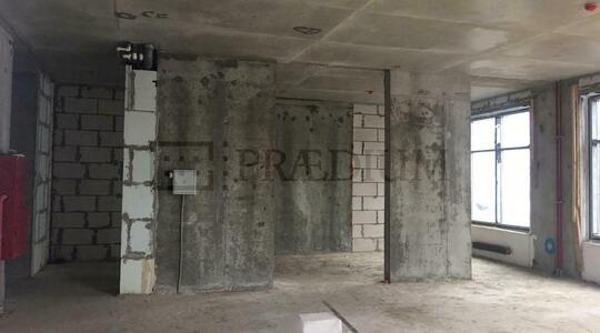 1 этаж/24 эт. Монолитного жилого дома (161 квартира). Введен в эксплуатацию, в декабре 2019 года выданы ключи. Общая площадь торгового помещения – 85,2 кв. м. Отдельный вход в помещение. Зальная планировка. Высота потолка – 3,50 м. Окна на две стороны дома. Состояние: под отделку (арендные каникулы). Две мокрые точки. Мощность 16 кВт. Центральные коммуникации. Прямая аренда.